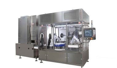 FlexLink's X45 puck handling system is designed for high capacities and transports small round-shaped pucks or carries.